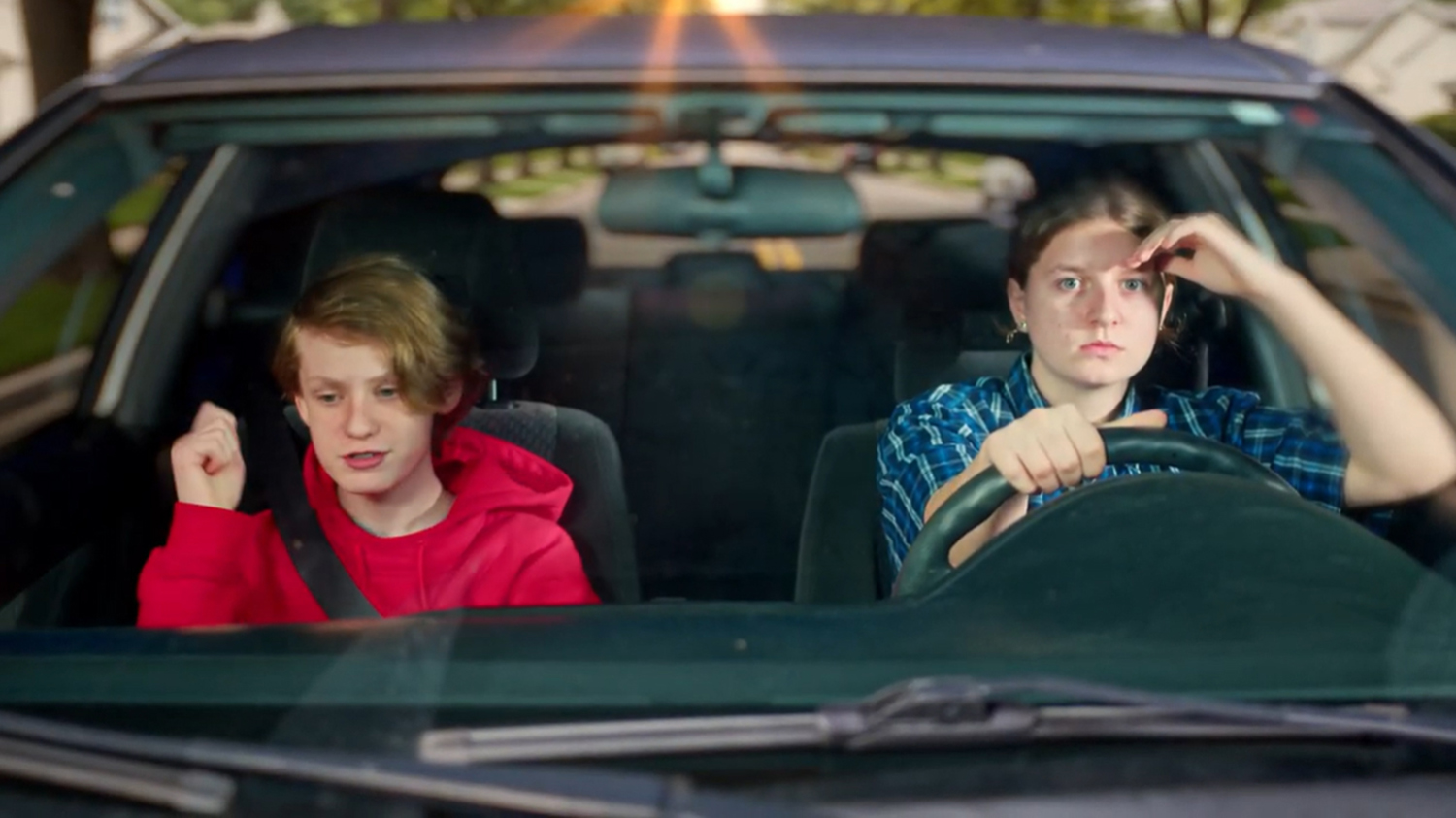 The video the other student group made features a teenage girl driving a young man through a neighborhood. The passenger constantly makes distracting comments and movements. Her attention diverted, the girl slams into a trash can, narrowly missing a pedestrian. A message — "One Distraction is All It Takes" — is followed by a screen listing organizations that address public health threats to the community, such as distracted driving.