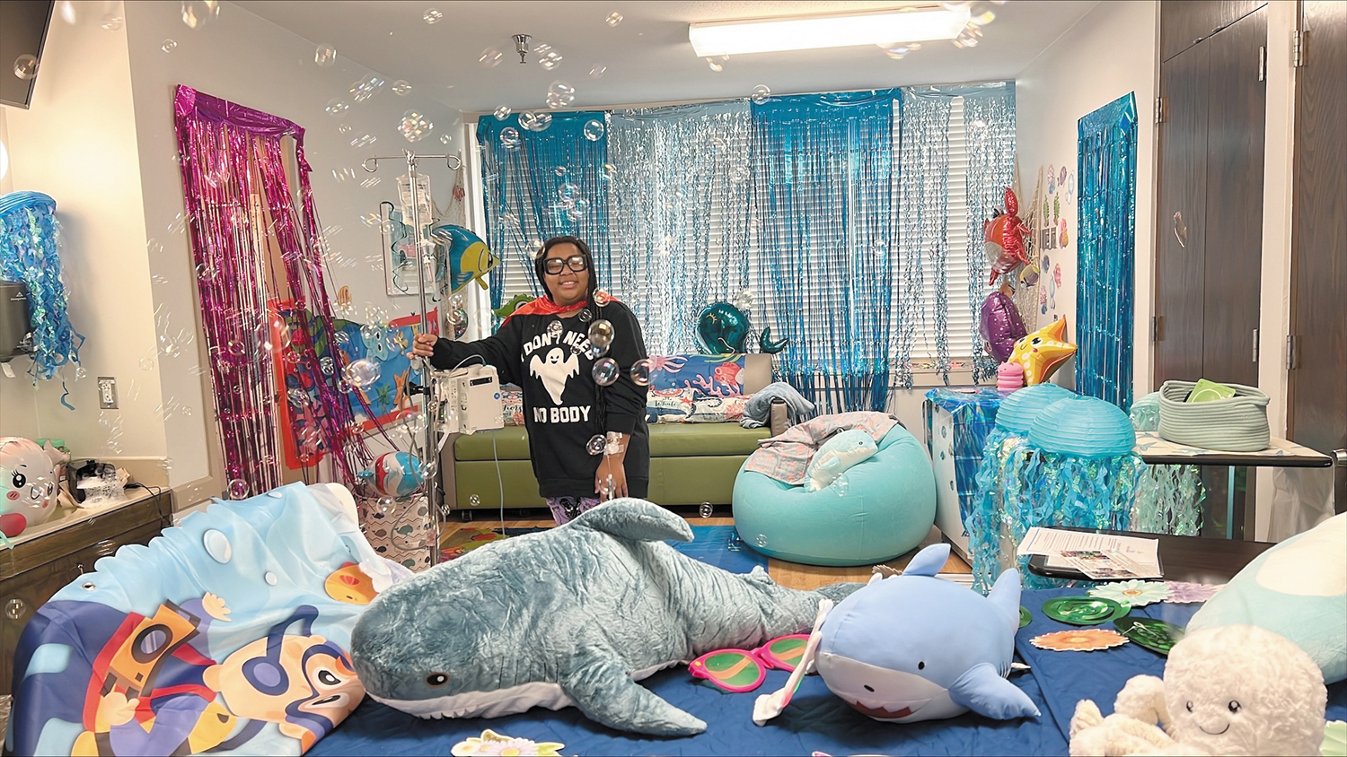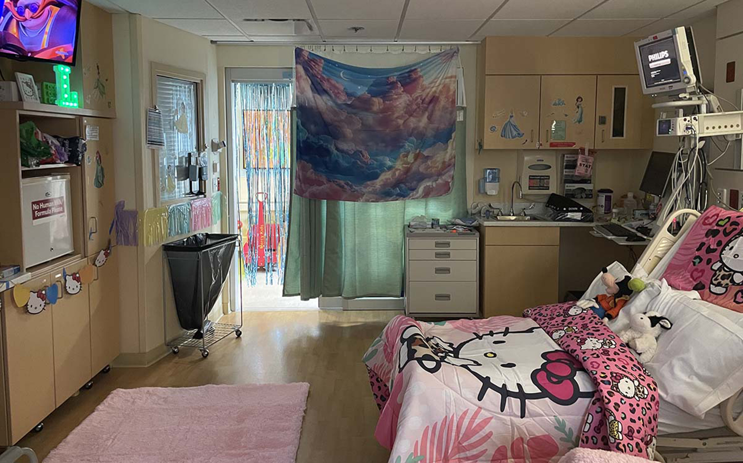 Sometimes caregivers decorate hospital hallways or walls or families hang cards or bring personal items to decorate a room. But organizations like Dec My Room level things up.