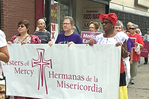 As part of the sisters' 2017 chapter gathering in Buffalo, N.Y., and in response to the U.S. withdrawal from the Paris Agreement to address climate change, Sr. Ward walked alongside other Mercy sisters in Walk for Water, advocating for clean water rights for all. Civic leaders and members of the Seneca-Cayuga Nation joined in the silent walk down the city's Main Street. Demonstrators held signs in English and Spanish that proclaimed "Water is Life" and "Mercy for Earth." The event garnered national media attention.