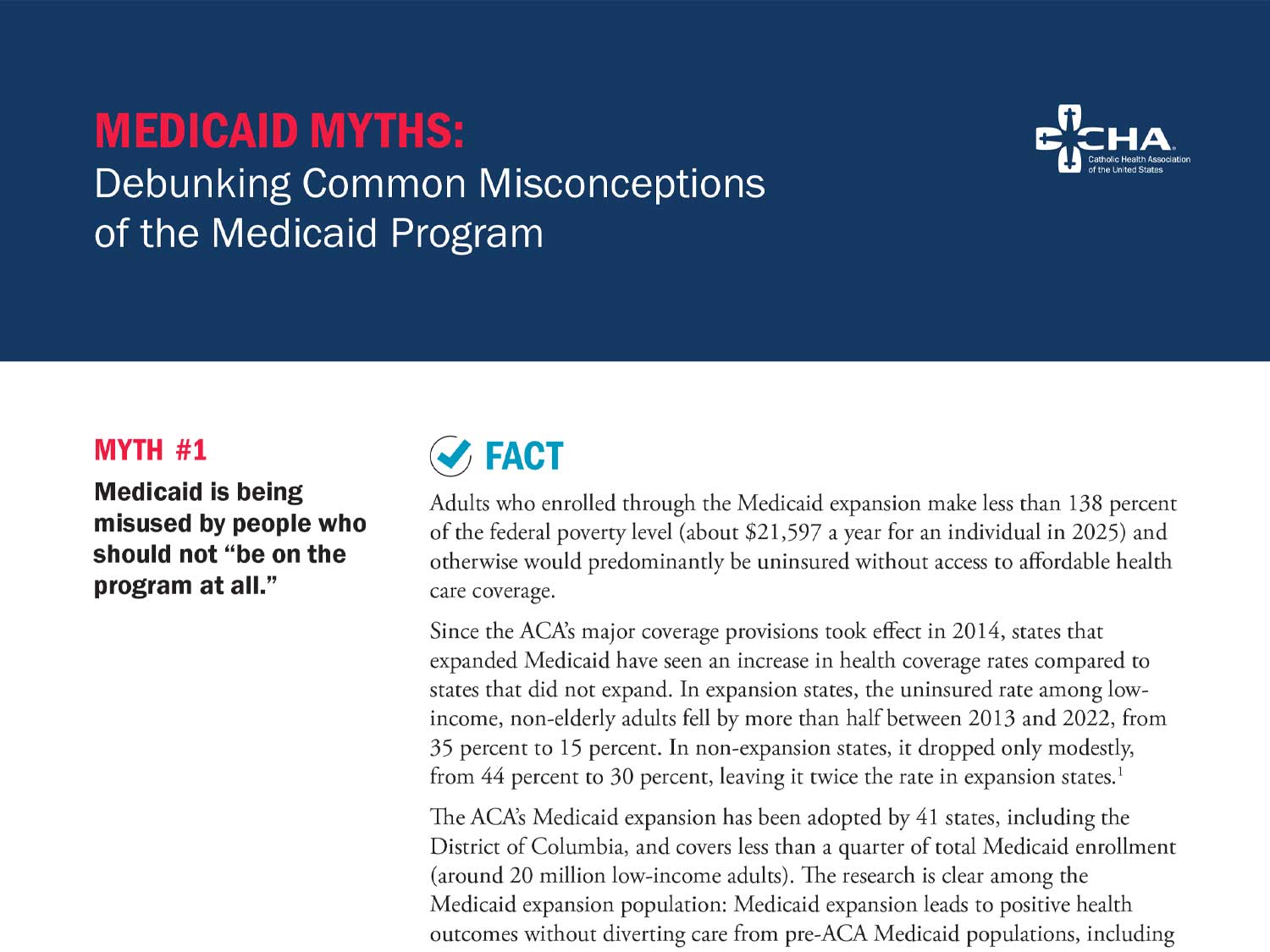 This CHA resource addresses common myths about the Medicaid program, providing cited facts to debunk these common misconceptions.