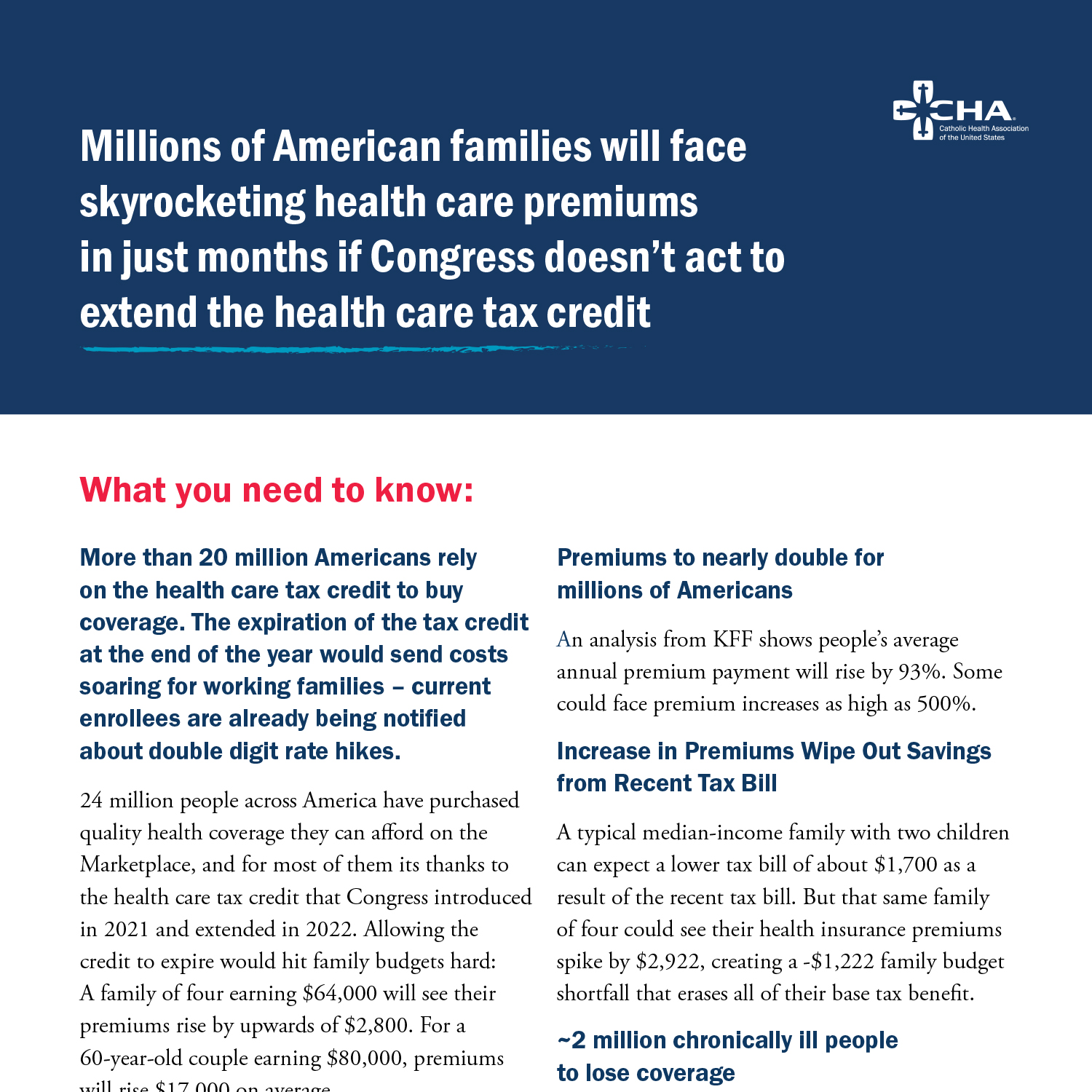 24 million people across America have purchased quality health coverage they can afford on the Marketplace, and for most of them its thanks to the health care tax credit that Congress introduced in 2021 and extended in 2022. Allowing the credit to expire would hit family budgets hard: A family of four earning $64,000 will see their premiums rise by upwards of $2,800. For a 60-year-old couple earning $80,000, premiums will rise $17,000 on average.