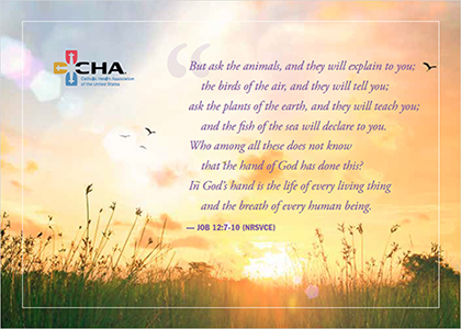 The late Pope Francis’ encyclical Laudato Si' emphasizes the call to embrace a new way of living, characterized by what is “good, true, and beautiful” (LS 205), as the Creator urges. Recognizing the urgency and necessity of action (LS 57) to protect creation, we are committed to collective action as Catholic health care, forging partnerships with sponsors, systems, facilities, and environmental experts to lessen the environmental impact of the health care we deliver and care for those who are disproportionately affected by the ecological crisis.