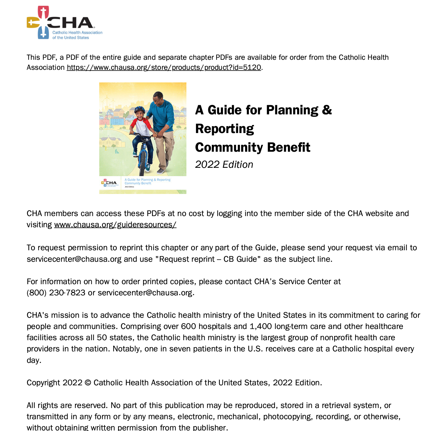 Share Download a PDF Order from the CHA store Examples of What Counts as Community Benefit This PDF, a PDF of the entire guide and separate chapter PDFs are available for order from the Catholic Health Association.