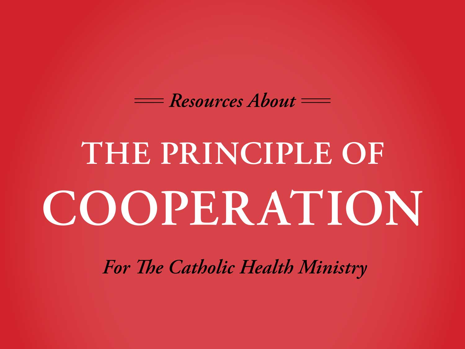 As Catholic individuals and health care organizations increasingly enter into relationships with other groups, many of whom may not share Catholic values, they can find themselves asking how they can act with integrity when the good that they try to do in serving needs of the community seems to butt up against the apparent wrongdoing of others who do not share the moral values and ethical principles of the Catholic health ministry.It was to respond to issues like these that the Catholic moral tradition developed the Principle of Cooperation.In light of the complexity and importance of the Principle of Cooperation in today's environment of accelerating mergers, partnerships and collaborations with secular and other-than-Catholic entities, CHA has produced this collection of resources to provide information and guidance about the nature of the principle and its application to the ministry.