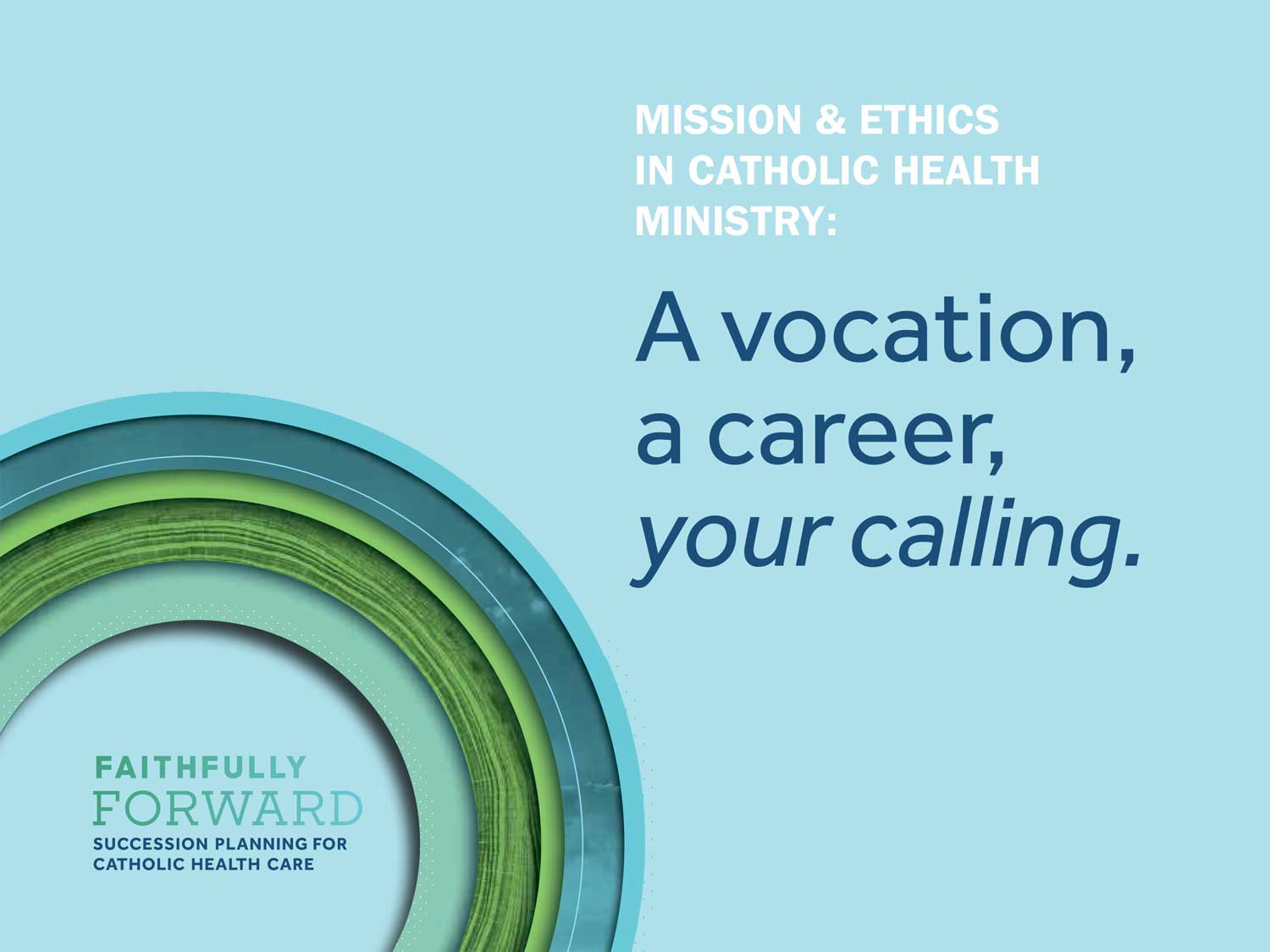 This brochure highlights the roles of mission leaders and ethicists in Catholic health care, fleshing out the education and competencies typically associated with both roles as well as explaining responsibilities and activities involved in the day-to-day work. It is part of CHA’s Faithfully Forward initiative; an ongoing project to focus on succession planning for mission, ethics and pastoral care. Developed to help attract candidates to Catholic health care, it is offered in a ready-to-use format as well as customizable versions for members.
