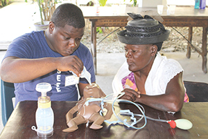 Sr. Picard said many women in the rural region choose to deliver at home because of the cost of care and because home birthing is an accepted, traditional practice. Woudeline Pierre-Jean said even those who choose to deliver in a clinic have no guarantee of a safe delivery. Apart from those now trained by the Global Health Initiatives project, few rural clinics have personnel adequately trained to manage a crisis delivery.