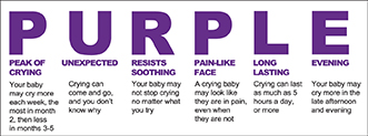 Her search ended when she found "The Period of PURPLE Crying" program developed by the National Center on Shaken Baby Syndrome. This prevention program, which is based on more than 30 years of research, provides tools and resources to hospitals and other health care organizations to help them educate parents and caregivers. (See below.)