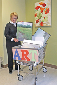 The hospital's rolling gallery is called the "Mona Blitz Art Cart."
