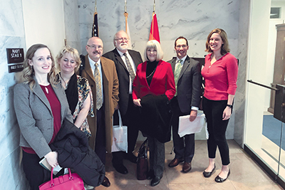 Trinity Health's contingent, shown above, included from left, Kelly Eder, the system's 340B Program management consultant; Stephanie Armstrong-Helton, system manager of communications and grassroots advocacy; and Michael Ryan, vice president of mission integration for Saint Agnes Medical Center. Also shown are Andrew Lowe, of Arrowhead Regional Medical Center, Cathy Kennerson, of El Centro Regional Medical Center, Jonathan Williams, of Oneida County Hospital and Kathryn Irwin, a staff assistant to Sen. Kamala Harris, D-Calif.