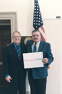 In the photo at left, Ron Grimes, chief of staff to Rep. Tim Ryan, D-Ohio, holds a 340B sign and stands with Tom Turner, vice president of government relations for Sisters of Charity Health System.
