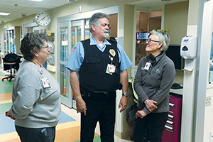 Boehmer said security officers view the approach quite positively. "It makes us much closer to the situations that we're involved in." Nurses and other clinical staff "include us in everything — they actually call us and ask questions about the parents or specific patients. It's very nice to be involved like that, instead of just being called up to the floor when there's a problem." Being a part of the care team is "one of the most enjoyable things we do."