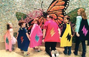 Kids receiving care in the emergency department at St. Louis' Mercy Children's Hospital can get an extra dose of bravery by donning capes made and donated by a family whose son Cody, second from right, was treated at the facility.