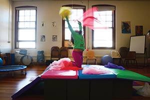 The map, a grid of boxes representing different areas of development, is color coded with green boxes for areas in which the child is fully functioning, yellow for areas of moderate impairment and red for major impairment. The staff use this map to understand which functions of the brain may be impaired, and to determine which therapies — potentially including art, dance/movement, music, play and animal-assisted treatment — may work best for that particular child.
