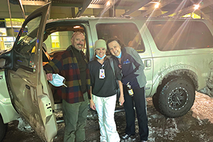 After talking with the care team in Marble Falls and consulting with other medical leaders at Dell Children's, Loyd packed his four-wheel-drive SUV with IV pumps, fluids, catheters and other supplies and hit the road. NICU transport team nurse Nicole Padden and hospital charge nurse Kelly Klaus joined him for the special mission.
