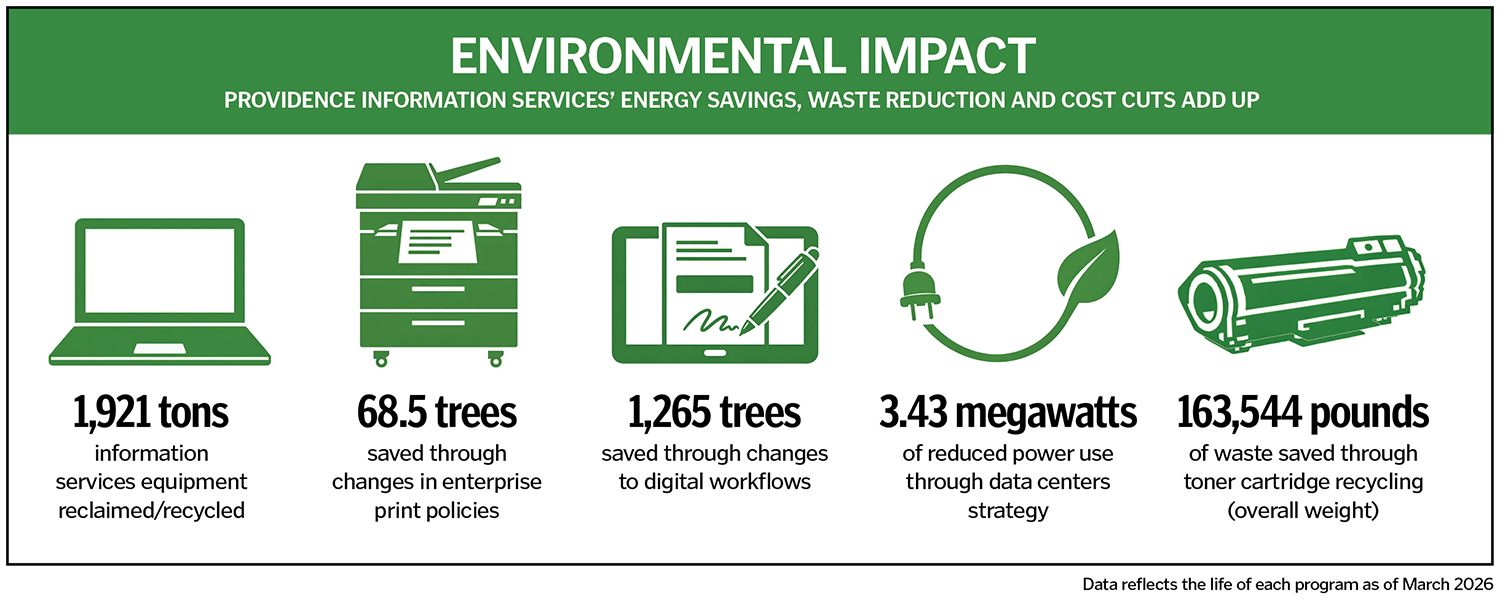 Providence St. Joseph Health's information services division uses analogies when quantifying some of the wins it has achieved in environmental stewardship.