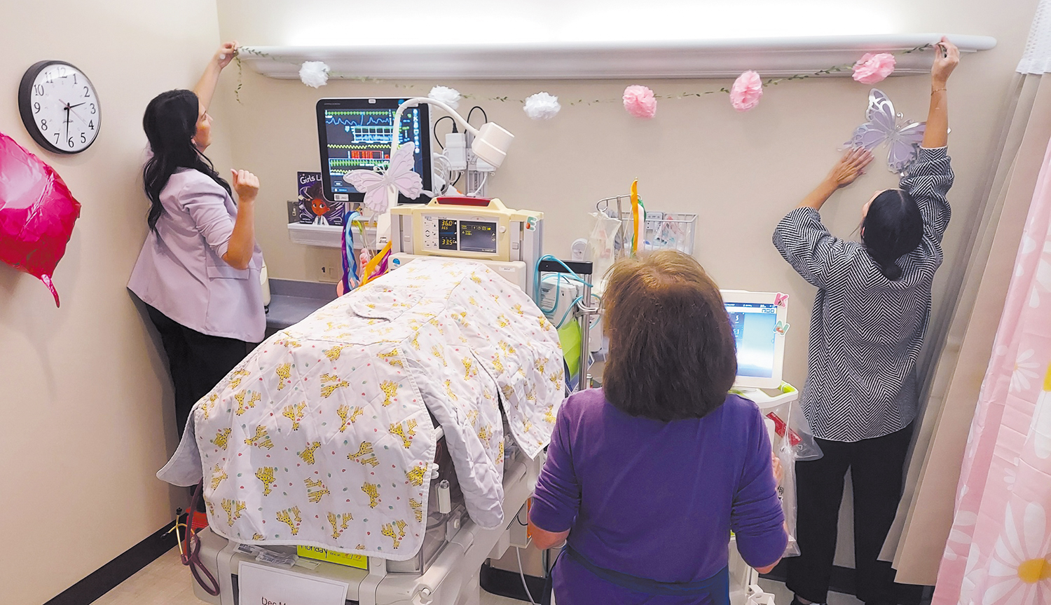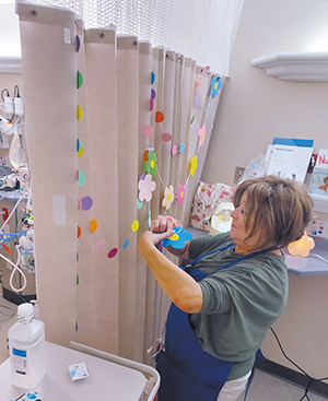The decorations must be removable and easily washable. Paper decorations must be laminated. When the patient goes home, they get to take everything with them.