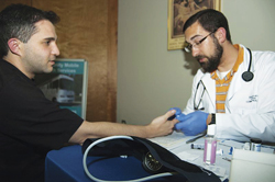 A 34-foot mobile unit travels thousands of miles per year to homeless shelters, workplaces, senior centers, schools, churches and the local mall. Staffed by physicians, registered nurses, advanced practice nurses and technicians, the mobile unit offers vaccinations and a set of screenings that vary depending on the particular audience served that day.