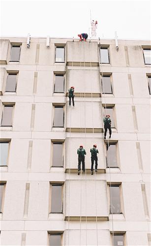 Bob Ritz, president of Mercy Medical Center – Des Moines, challenged medical center staff to raise the percentage of people participating in the 2015 Spirit of Mercy Employee Giving Campaign to 35 percent from 24 percent last year. While the employees didn't quite reach the percentage goal, they did raise $890,000 — more than ever before — working with Variety and United Way on the campaign. To put an exclamation point on that generosity, Ritz, third from left, and three others rappel down the side of Mercy Children's Hospital in May, much to the delight of the pediatric patients, their families and employees.