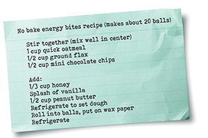 Among the most popular fare, she says, is a cucumber/strawberry/onion salad with balsamic vinegar and a protein ball made with peanut butter. Kale chips, on the other hand, "didn't go over very well," says Blair.