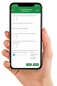 Participants may be asked to journal about what they are experiencing including their physical symptoms, or lack of symptoms, and socioeconomic circumstances related to COVID. They may be encouraged to do a head-to-toe check-in. Most of the questions ask for free-form responses with no restrictions on length.