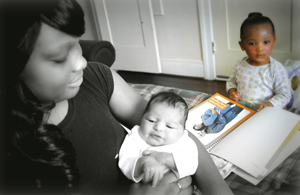 "Welcome Baby" client Dena Turnstall cradles her newborn Greenly Taylor. His toddler sister Taylor Evelyn Lopez is in the background. (Photo: MoNesha La Violette)