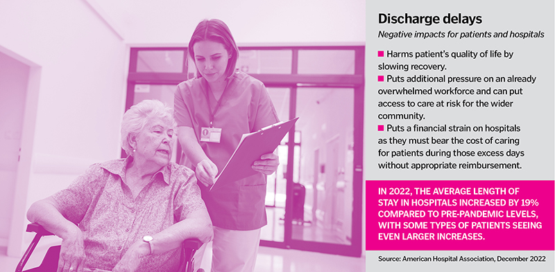 According to the American Hospital Association, the average hospital stay increased 19% overall in 2022 compared with pre-pandemic levels, and increased 24% for patients discharged to post-acute care, such as skilled nursing or rehabilitation facilities.