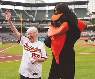 Additionally at the Aug. 15 home game at Baltimore's Camden Yards, Sr. Helen Amos, RSM, received the Orioles Heavy Hitter Award in recognition of the 800-plus Mercy employees who attended the game that evening. Sr. Amos, who is executive chair of the Mercy board, appeared on the Orioles scoreboard as she accepted a game ball autographed by Orioles players.