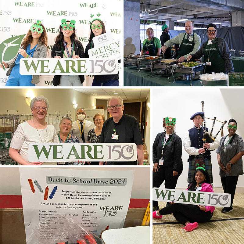 Mercy Medical Center is hosting numerous events for employees in honor of its 150th anniversary campaign, which is called "We Are 150." The campaign has included a St. Patrick's Day event and a back-to-school drive.