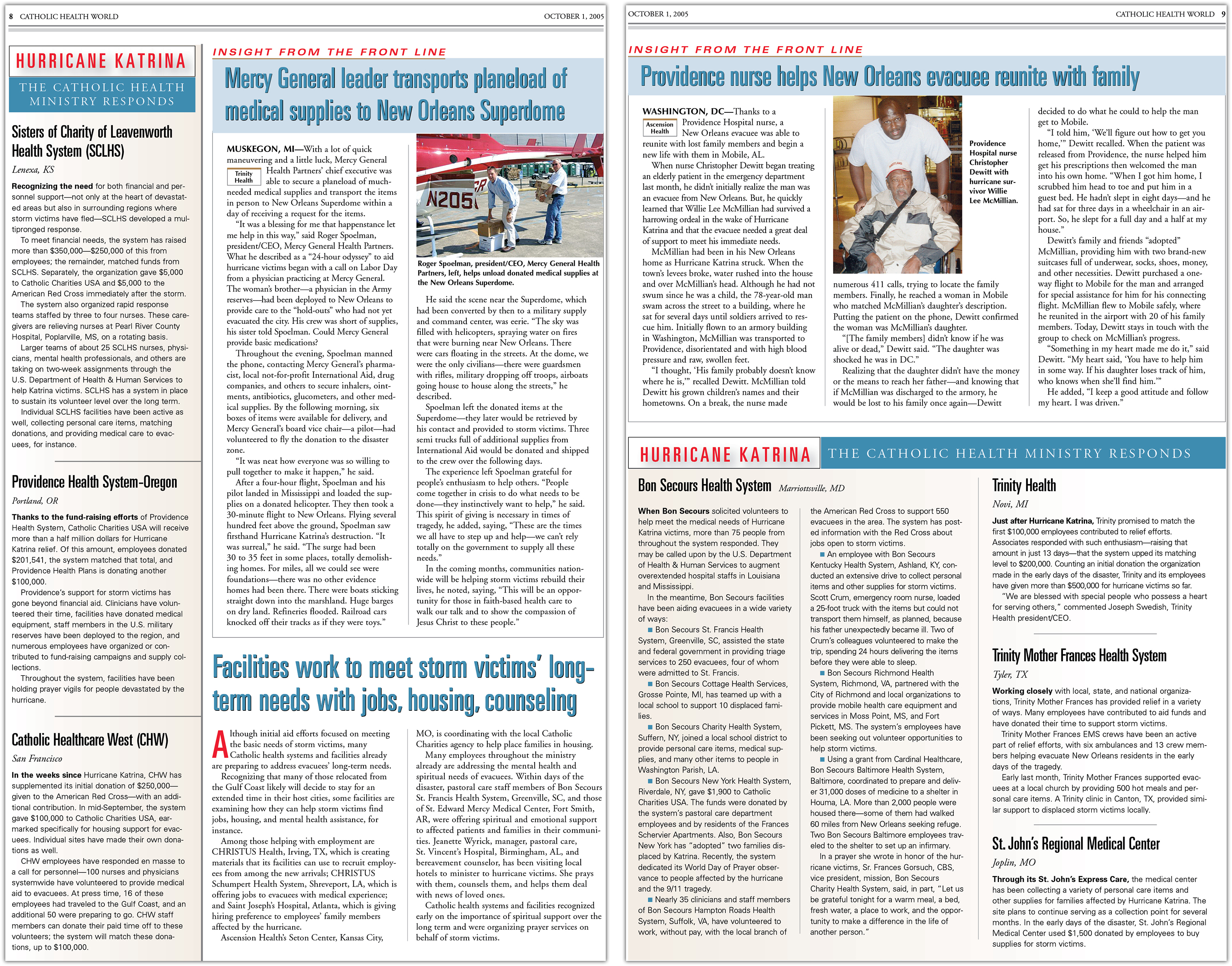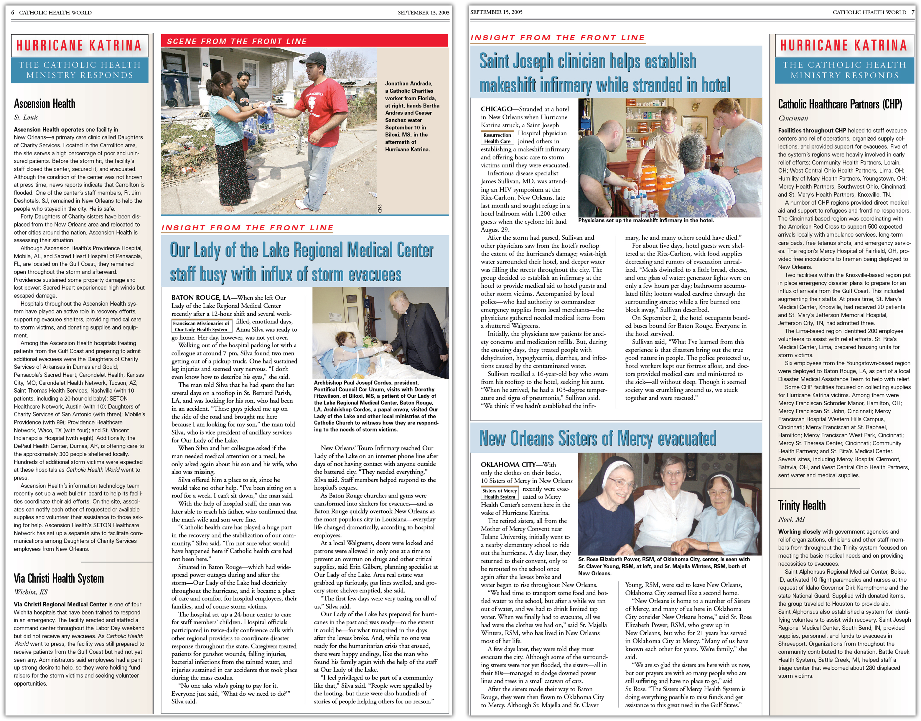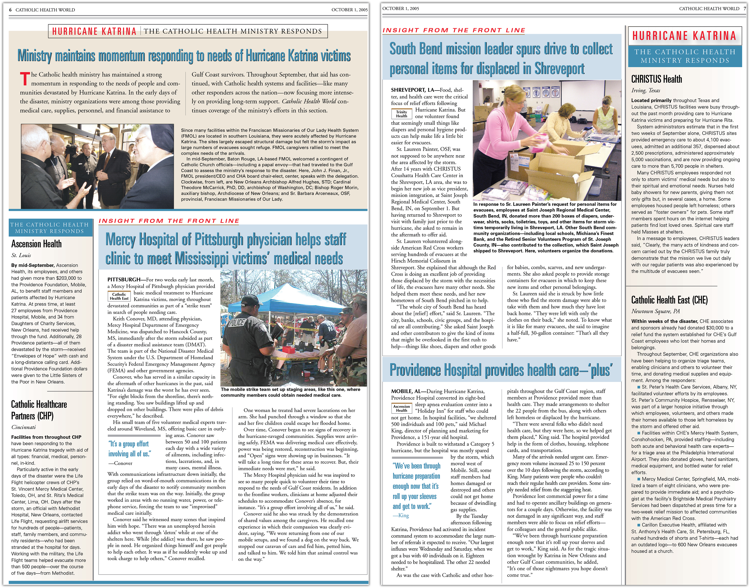 Coverage of the hurricane and the Catholic health ministry's efforts continued in the October issues of Catholic Health World.