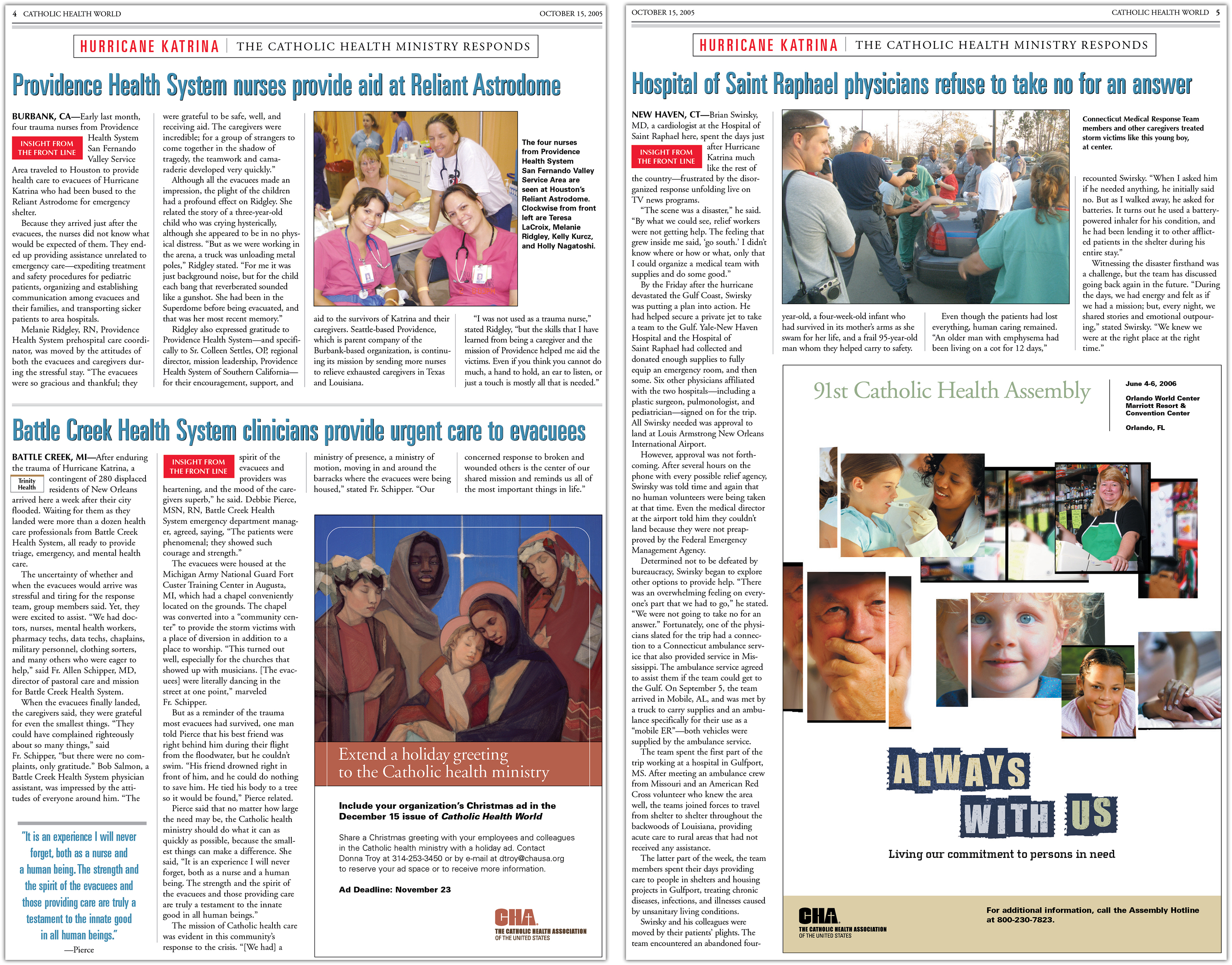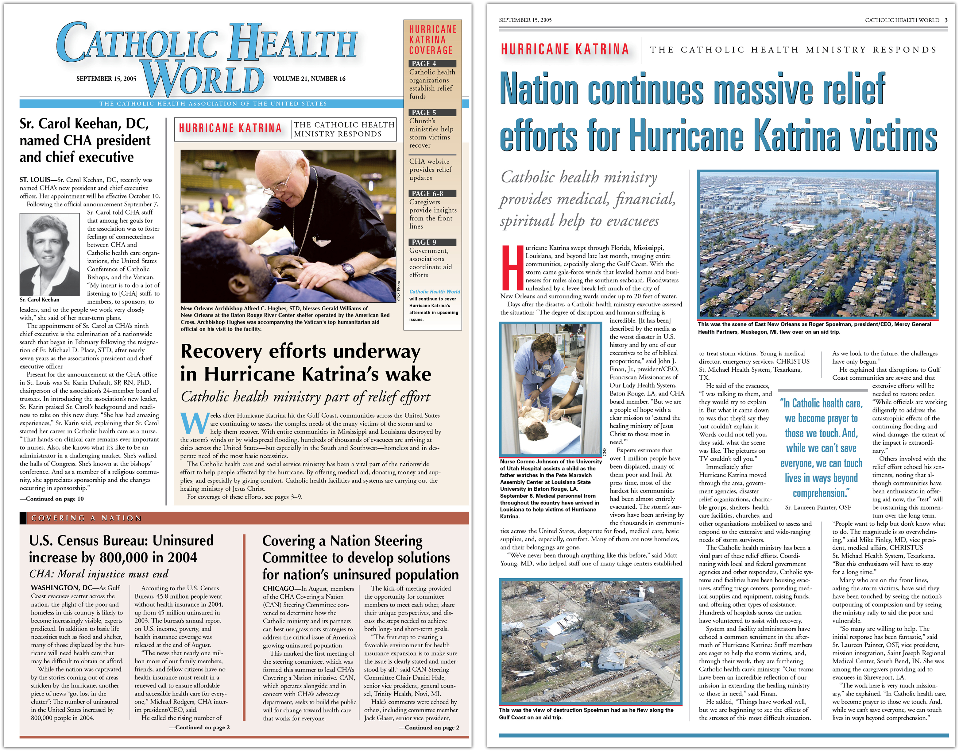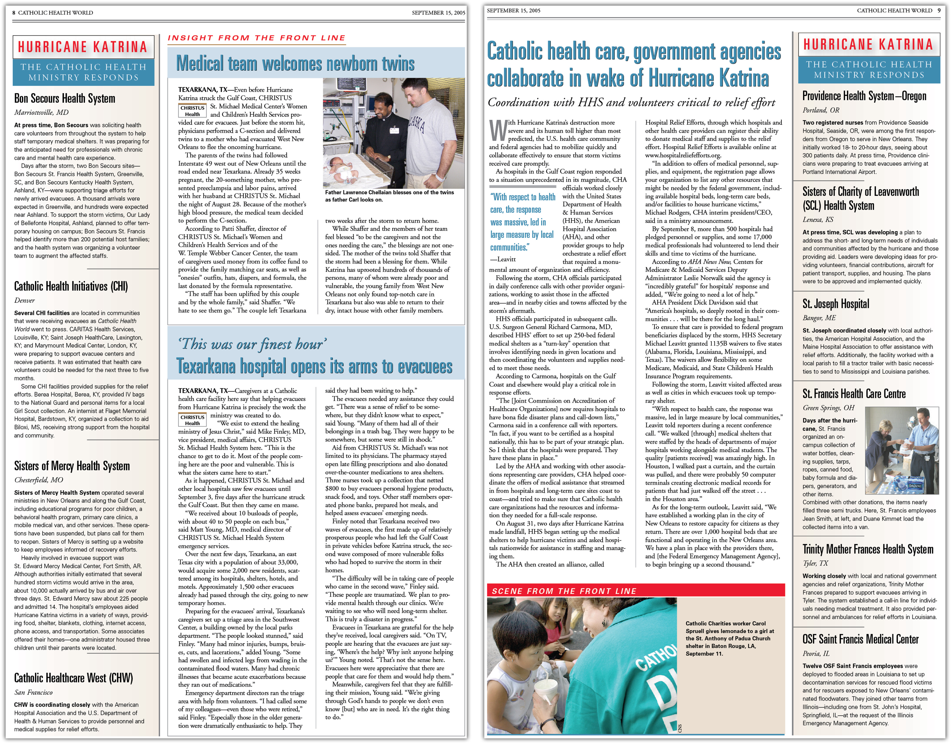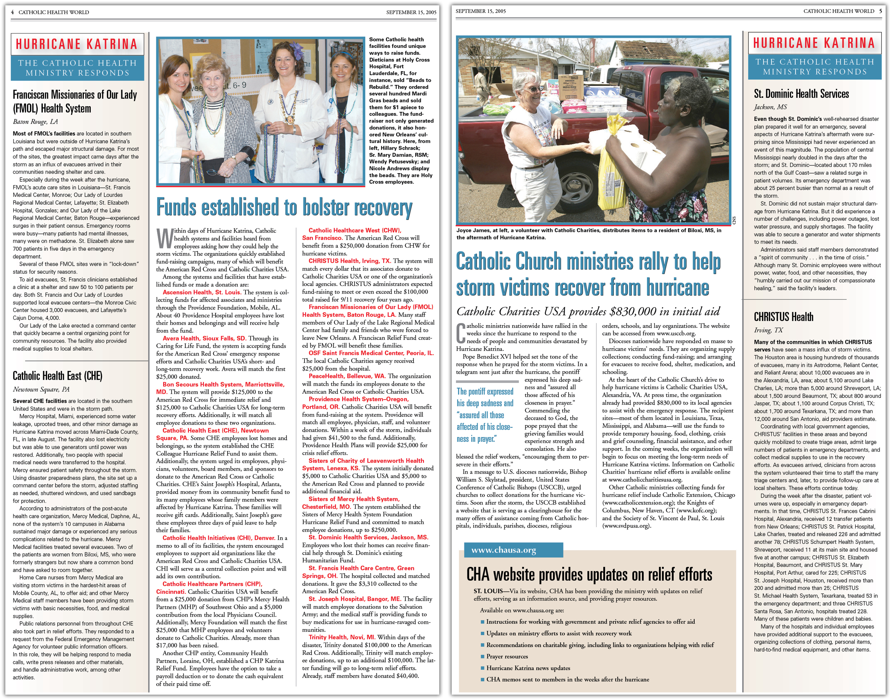 Coverage of the hurricane and the Catholic health ministry's efforts continued in the October issues of Catholic Health World.