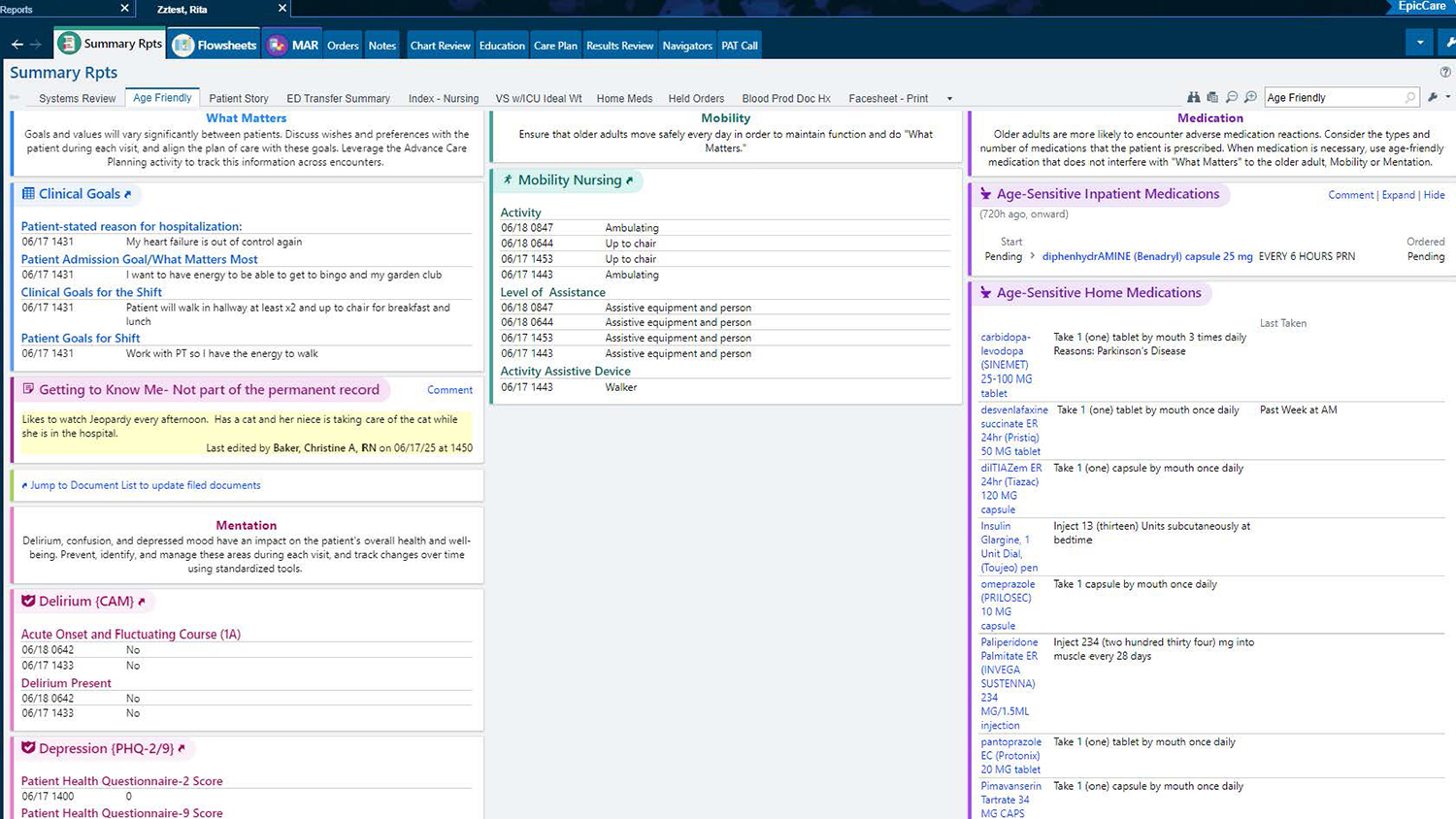 In June, SSM Health added a dashboard in its electronic health record that documents the 4Ms for each patient. Goffinet says any care provider who checks the dashboard "can identify what matters most to the patient, how much they've mobilized the day before, if they've had any delirium, and then what are those high-risk medications that we need to be addressing?"