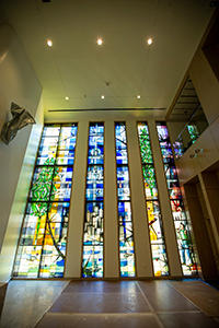 Baumer calls the Commons Building the cornerstone of the new hospital. It connects the hospital and the ambulatory care center and is wrapped in patinaed copper, a nod to Desloge Tower. A two-story chapel soars from the Commons Building. There's an outdoor garden for reflection and prayer, other green spaces and water features on the grounds.