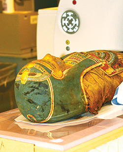 Tutu was X-rayed in 1963. CT scans were taken of Tutu in 1991 and of the Roman-era mummy in 1992. However, those images don't offer the level of clarity now possible. After St. Anthony Shawnee installed its 64-slice CT scanner in March, the director of the Mabee-Gerrer Museum of Art, Dane Pollei, asked Charles "Chuck" Skillings, the hospital's president, about taking new images of the mummies since they hadn't been examined in about a quarter century.