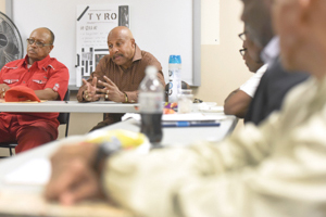 TYRO meetings start with an icebreaker. Each participant offers a personal high and low for the week. At one meeting on a warm spring afternoon that mixed newcomers, TYRO graduates and mentors, the talk among the dozen-plus men is about the vicissitudes of life — family, overt and structural racism, challenges getting a job, illness and death. One man shares that his adult daughter called the night before to tell him she is addicted to heroin and needs help to get clean.