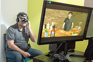 The bartender is an avatar, and the scent of alcohol has been generated by a machine. The patient and his therapist are in a treatment room at the Foglia Family Foundation Residential Treatment Center in Elk Grove Village, Ill., a suburb of Chicago, and the patient is undergoing virtual reality therapy.