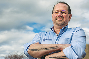 Rottnek, a professor of family and community medicine at SLU, got the tattoo four years ago when he left his post as medical director at the jail in St. Louis County, Missouri. The tattoo signifies the 1976 ruling by the U.S. Supreme Court that denying health care to incarcerated people is unconstitutional. It also symbolizes Rottnek's commitment to correctional care.