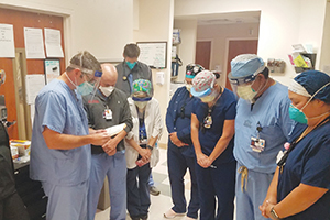 Stephen Kazanjian, second from left, CHRISTUS Spohn Health System vice president of mission integration, rounds with associates at a CHRISTUS Spohn hospital. He is part of a mission services team that helps associates cope with trauma experienced at work, including the death of a colleague.