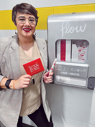 The foundation chose to buy the dispensers from Aunt Flow, a company that makes period products and dispensers, but only dispensers that give the products away free. Aunt Flow donates one product for every 10 sold to organizations that supply period products to women in need.