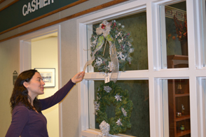 A passerby browses the submissions entered in a wreath decorating contest at Kenmore Mercy Hospital in Kenmore, N.Y.