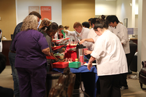 High school culinary arts students serve refreshments before the tree lighting at Covenant Health's Hospice of Lubbock, Texas. |