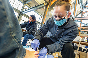 This year, two days before Thanksgiving, 40 PeaceHealth volunteers — orthopedic surgeons, nurses, and clinical and nonclinical staff — provided 420 of the city's underserved with free foot examinations and medical orthotics. They also received a personal care bag that included two pair of waterproof socks; a hygiene kit; lip balm; a foot care kit; and a pair of sturdy, waterproof boots.