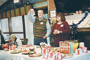 Louis Benoit, left, spots the icons on a holiday-themed bingo card with Lauretta Lafond during the Berns Twins Memorial Christmas Party at Presence Merkle-Knipprath Countryside.Amy Smith / © CHA