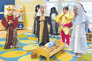 Drew Burrichter is vice president of mission for Bon Secours' Richmond market. He says St. Mary's Christmas pageant and service Dec. 6 included a performance of the Christmas story by children who attend the hospital's on-site day care center. The kids flip a symbolic "On" switch as the building engineers light up the campus.