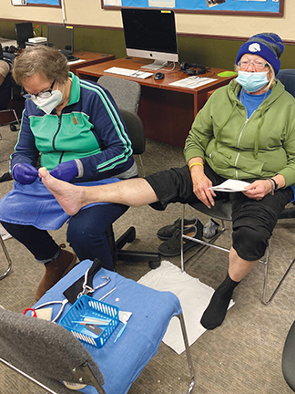 Even when the foot clinics were halted, the volunteers kept up their foot care-related efforts. They assembled care packages with do-it-yourself essentials such as lotion, clippers and nail files along with a new pair of socks. The packages were available at Corpus Christi House.