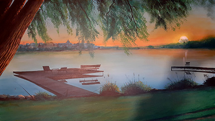 Artemio Huerta painted this scene for a former co-worker of his in the housekeeping department at SSM Health. The colleague's husband had died, and Huerta painted his favorite fishing spot for her. The colleague says this painting has great significance to her.