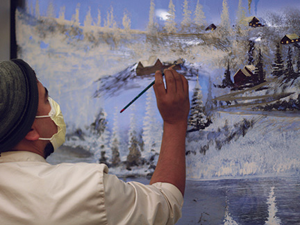 Huerta says he loves to paint snow scenes. Originally from Mexico, he came to Wisconsin in 1995 and experienced for the first time freezing temperatures and a fresh blanket of snow. While he could do without the cold, he says he's still wowed by the beauty of snow.