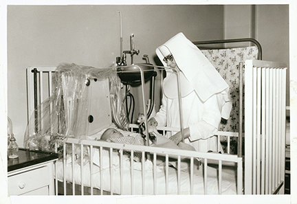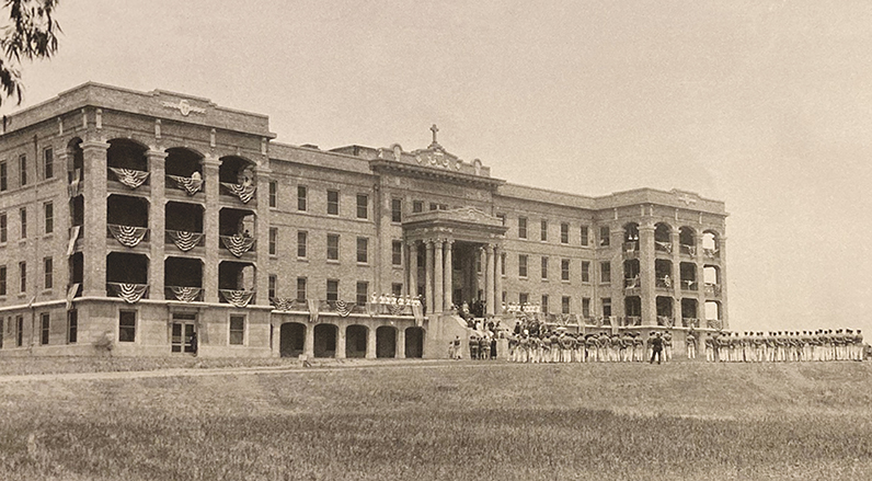 Our Lady of the Lake Sanitarium in Baton Rouge on May 12, 1924, during a National Hospital Day celebration. The event included a performance by the Louisiana State University Cadets and band. Our Lady of the Lake's relationship with LSU began in the first months after the sanitarium's opening.