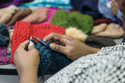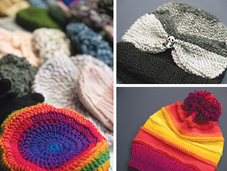 Every year, members of Mercy Medical Center's knitting and crocheting club join numerous other Baltimore community members in making winter accessories for people who are experiencing homelessness. The club donates 300 to 350 items. Photo by Jennifer McMenamin Photography, LLC