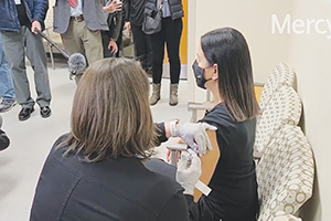She's sharing knowledge and best practices regarding COVID across the Mercy system through email, Webex and other internal platforms. Even as the pandemic has stretched her hospital to crisis capacity, she has routinely granted interviews to local media to discuss the steps the hospital is taking to address the emergency and to urge the public to adhere to basic precautions like masking and social distancing to avoid contracting or spreading the virus.