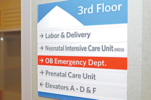 The OB-ED is on the third floor of the hospital, right next to the obstetrics department and two floors up from the main ED. The OB-ED has four patient beds and is equipped with technology to assess the health of both mother and fetus. It is staffed at all times by an obstetrician gynecologist with OB Hospitalist Group who works a 24-hour shift.